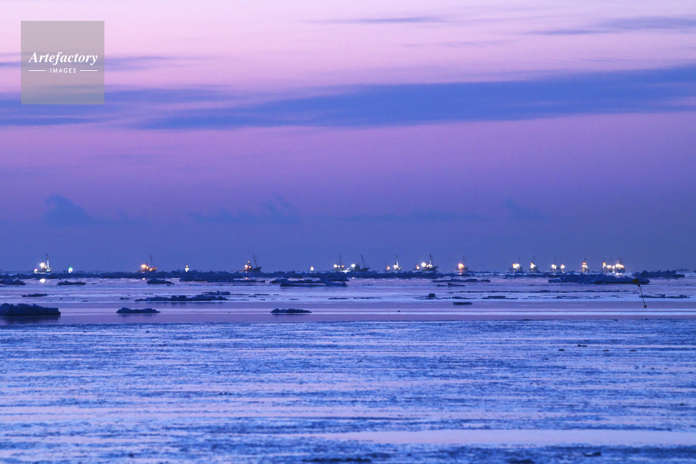 | 作品タイトル | 尾岱沼漁港から出漁するホタテ漁船の朝と流氷 | モデルリリース | なし | |