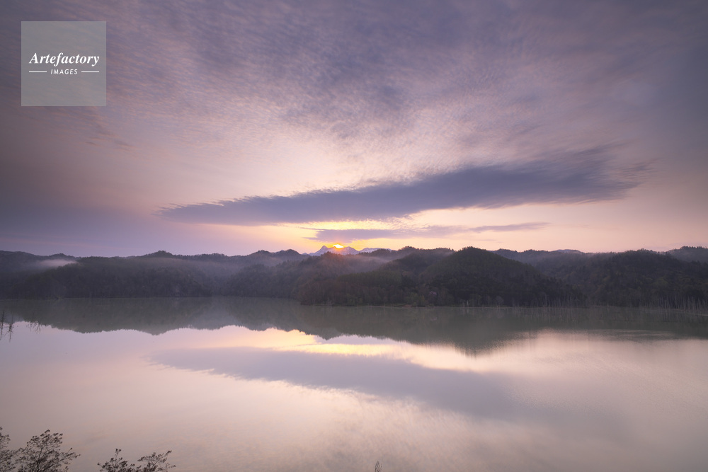| 作品タイトル | シューパロ湖(夕張川)の日の出と夕張山地 | モデルリリース | なし | |