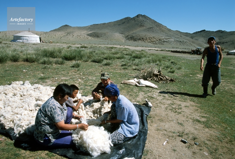| 作品タイトル | 遊牧民・ヒツジの毛でフェルト作り | モデルリリース | なし | |