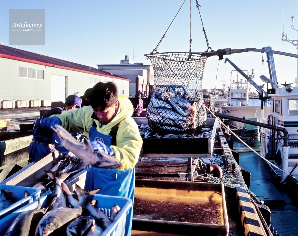 | 作品タイトル | 根室漁港、サケの水揚げ | モデルリリース | なし | |
