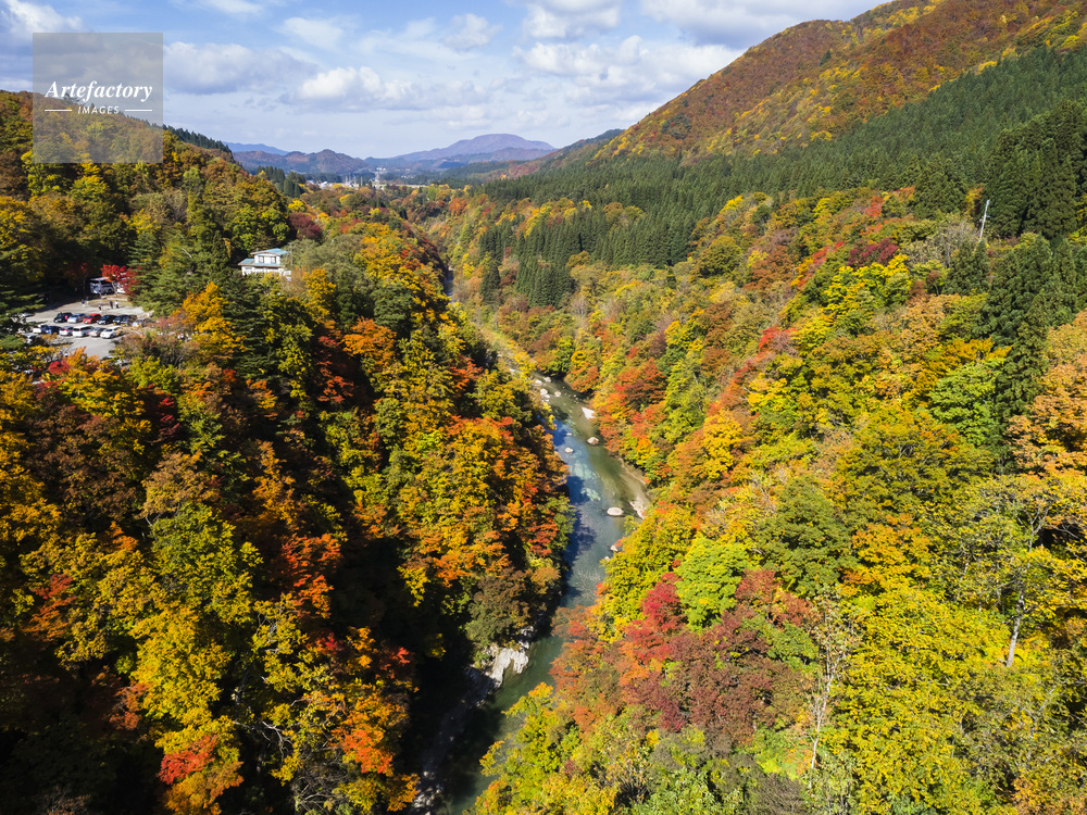 | キャプション | 皆瀬新処 小安峡 渓谷 紅葉 皆瀬川 栗駒国定公園 ドローン 空撮 | 制限事項 | ||