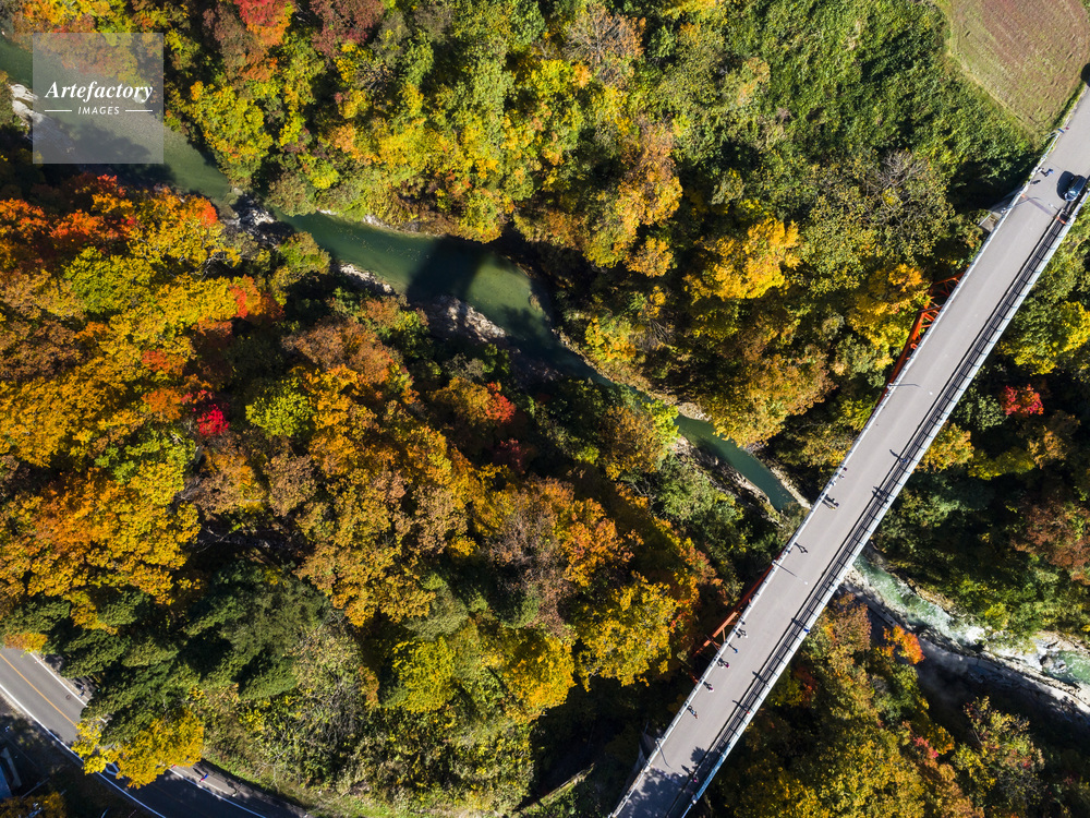 | キャプション | 皆瀬新処 小安峡 渓谷 紅葉 皆瀬川 河原湯橋 栗駒国定公園 ドローン 空撮 | 制限事項 | ||