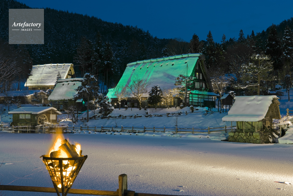 | 作品タイトル | 雪の飛騨民族村のライトアップ | モデルリリース | なし | |