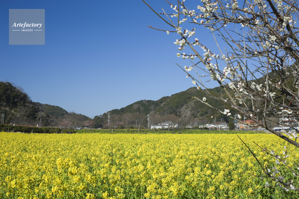 | 作品タイトル | なの花まつり会場と梅の花と青空 | モデルリリース | なし | |