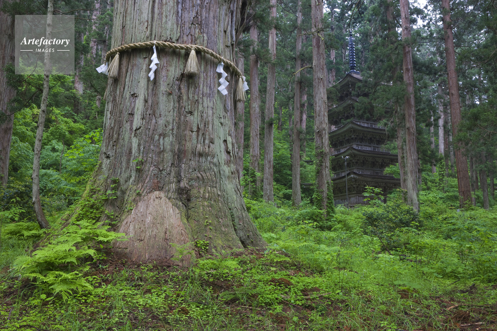 | 作品タイトル | 雨の羽黒山の爺スギと五重塔 | モデルリリース | なし | |