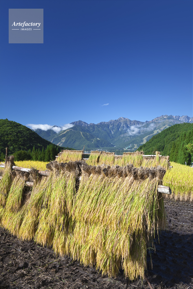 | 作品タイトル | 青鬼のハサ掛イネと白馬三山 | モデルリリース | なし | |