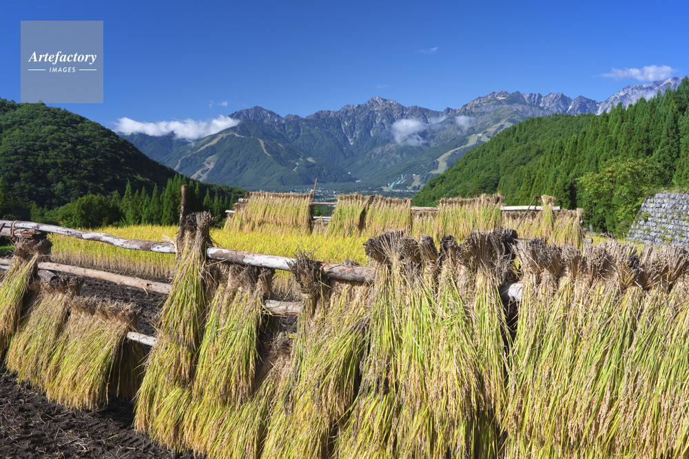 | 作品タイトル | 青鬼のハサ掛イネと白馬三山 | モデルリリース | なし | |