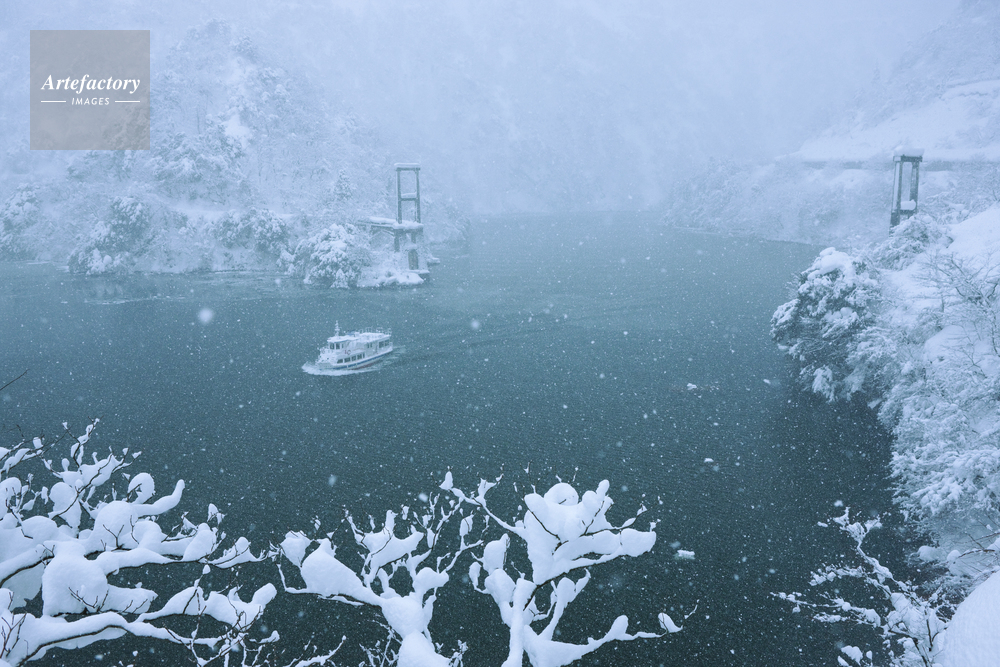| 作品タイトル | 雪の庄川峡と遊覧船 | モデルリリース | なし | |