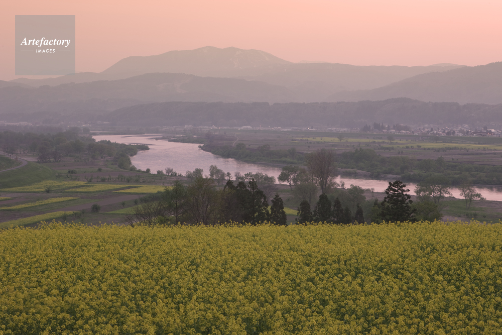 | 作品タイトル | ナノハナ公園と千曲川の夕景 | モデルリリース | なし | |