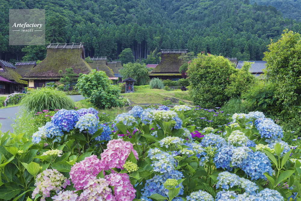 | 作品タイトル | アジサイ咲くかやぶきの里 | モデルリリース | なし | |