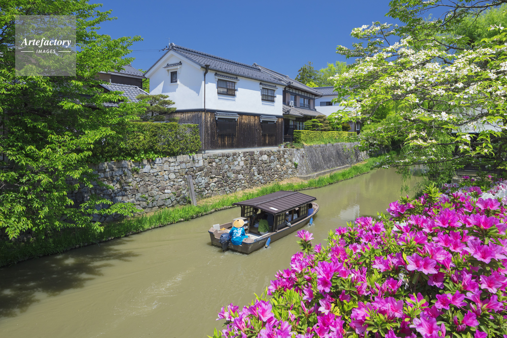 | 作品タイトル | ツツジ咲く八幡掘と遊覧船 | モデルリリース | なし | |