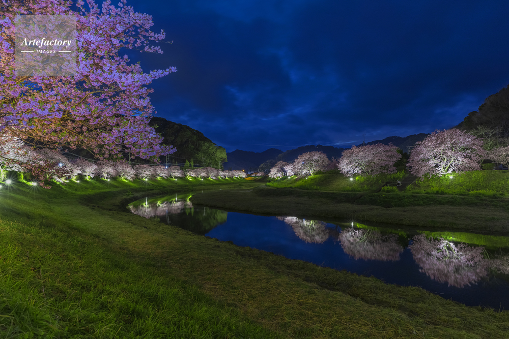| 作品タイトル | みなみの桜のライトアップと青野川 | モデルリリース | なし | |