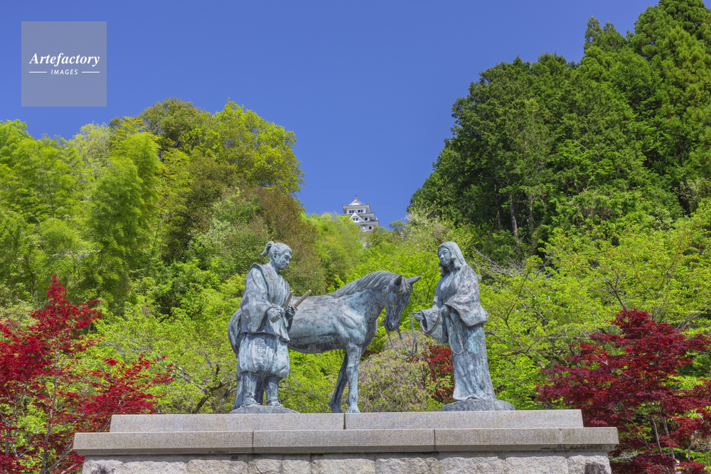 | 作品タイトル | 新緑の山内一豊と千代の像と郡上八幡城 | モデルリリース | なし | |