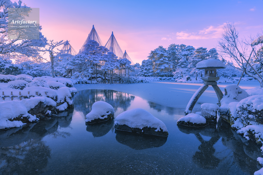 | 作品タイトル | 朝焼けと雪の兼六園 | モデルリリース | なし | |