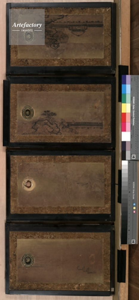 | キャプション | 黒書院,一の間,違棚上小襖,東面,北より3,紙本墨画淡彩,重要文化財,二の丸御殿 | 制限事項 | ||