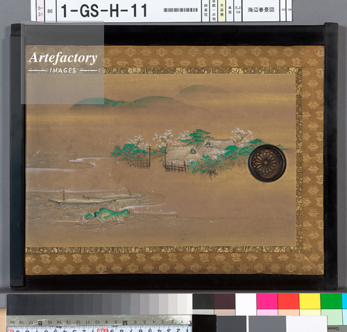 | 作品タイトル | 御書院 雲鶴一の間 天袋襖 東面 北より4 紙本著色 海辺春景図 | モデルリリース | なし | |