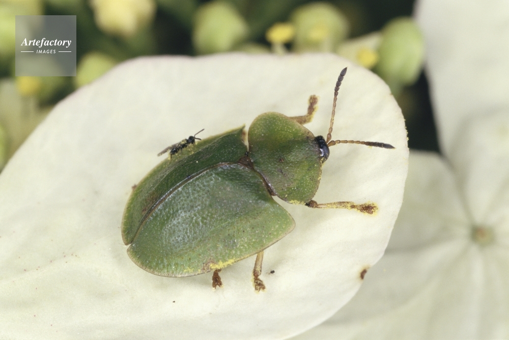 | 作品タイトル | アオカメノコハムシ 寄生バチがとまっている 「目立つ色は危険信号」 | モデルリリース | なし | |