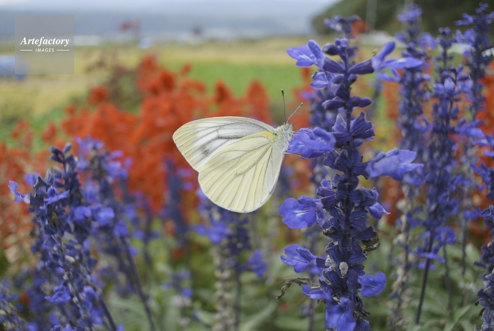 | 作品タイトル | スジグロシロチョウ ブルーサルビアの花 | モデルリリース | なし | |