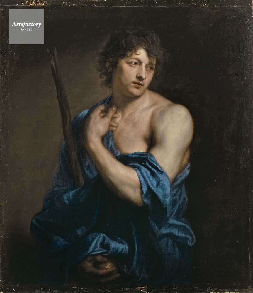 | キャプション | Paris, son of King Priam of Troy, shown three-quarter length, looking to the right. He wears a blue drapery and holds a shepherd's crook in his right hand and the golden apple in his left. | 制限事項 | ||