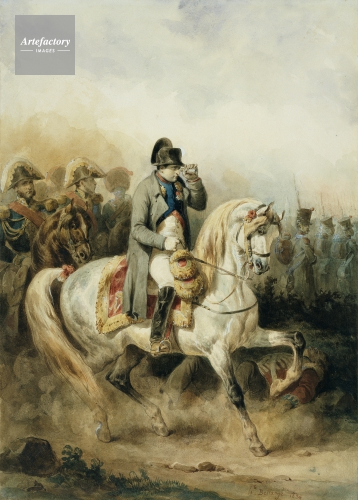 | キャプション | The Emperor Napoleon (1769-1821; Emperor 1804-14; 1815) on a grey horse and wearing a grey coat. A British infantryman lies dead on the right. | 制限事項 | ||