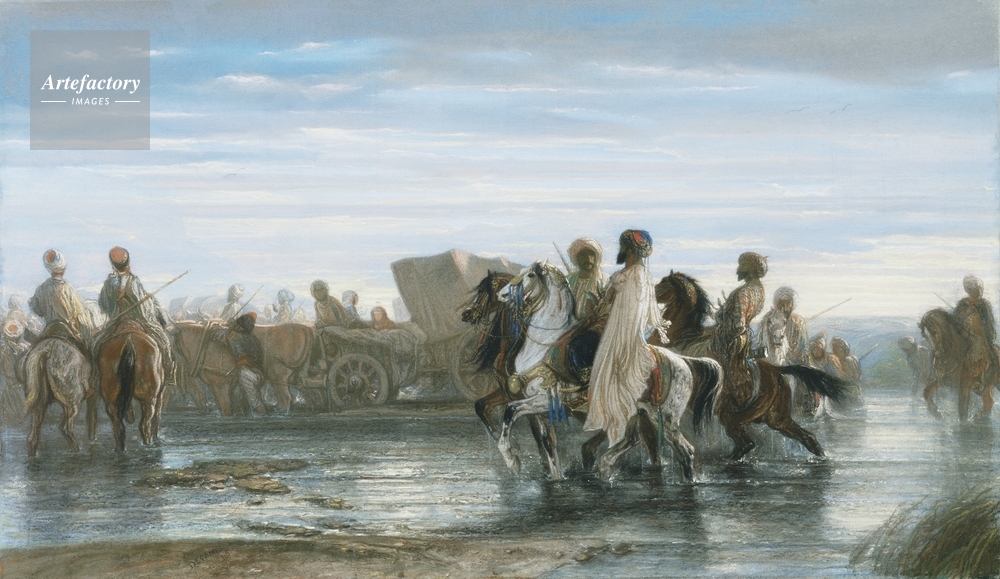 | キャプション | An Oriental scene. Groups of men on horses with carts and wagons fording a river. | 制限事項 | ||