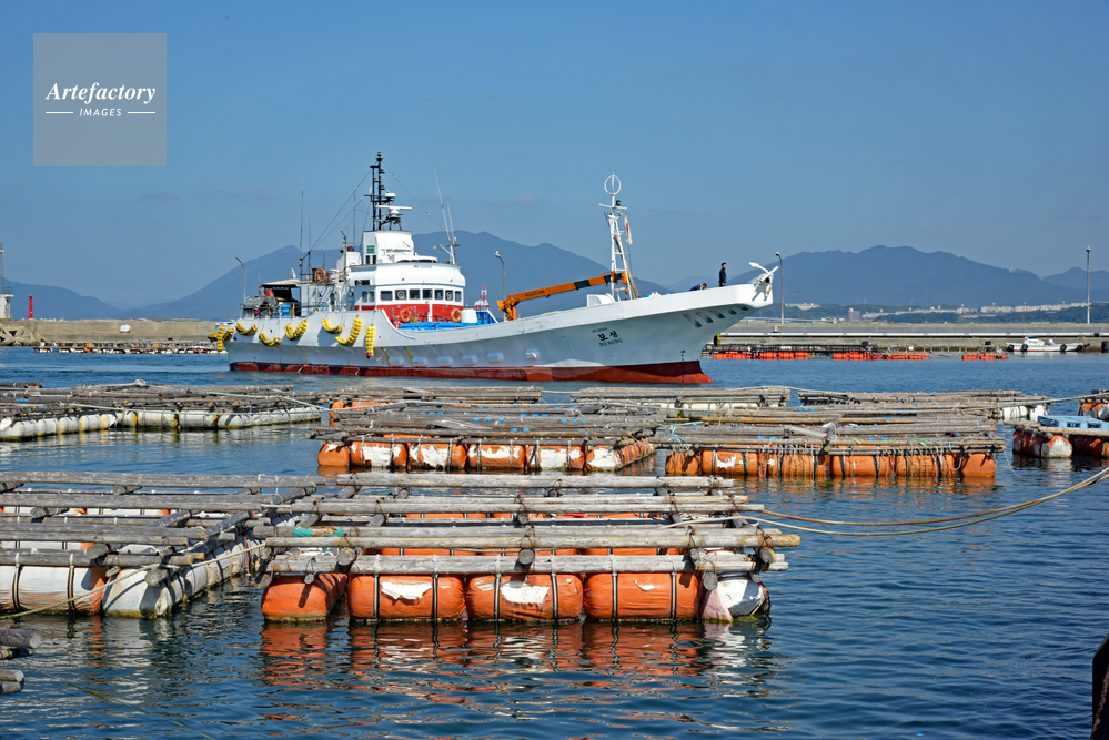 | 作品タイトル | 南風泊漁港 養殖いかだと入稿する韓国漁船 | モデルリリース | なし | |