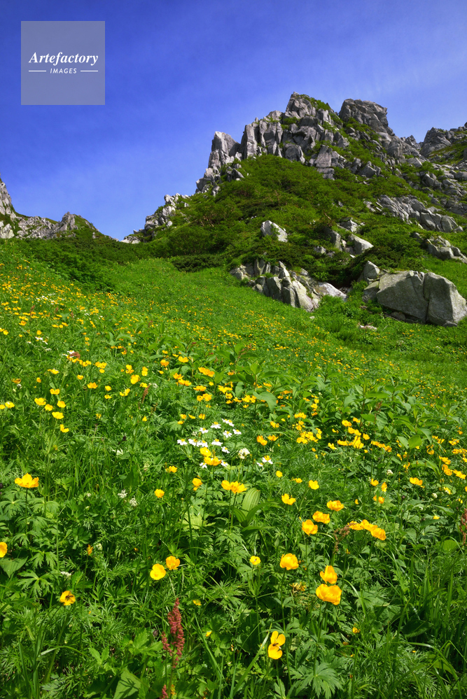| 作品タイトル | 中央アルプス・千畳敷のシナノキンバイ群生 | モデルリリース | なし | |