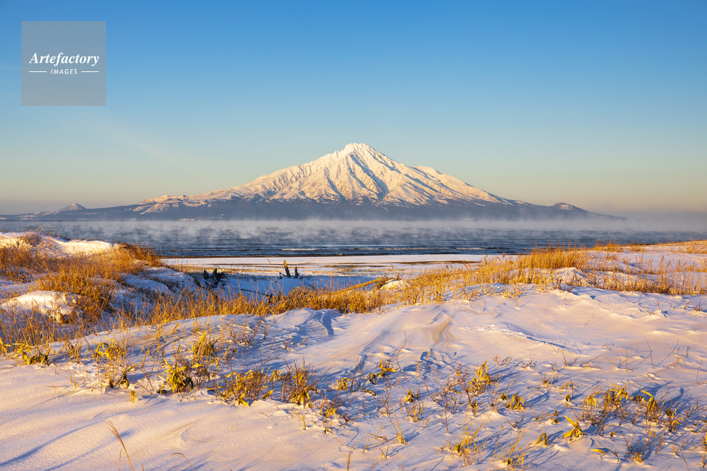 | 作品タイトル | 朝日に染まる利尻島と気嵐の利尻水道 | モデルリリース | なし | |