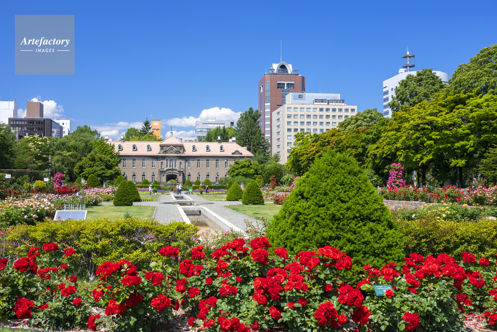 | 作品タイトル | バラ咲く大通公園と札幌市資料館 | モデルリリース | なし | |
