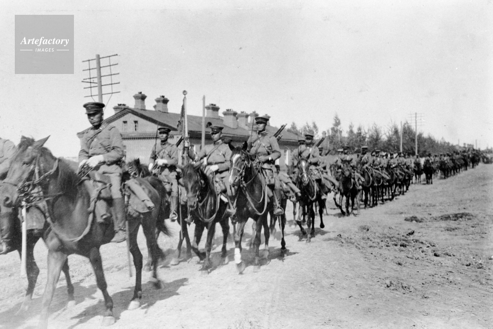 | キャプション | 日本がロシア革命に干渉するため連合国の一員としてシベリアに出兵した。ブラゴベシチェンスクに向かう日本派遣軍の騎兵連隊。 | 制限事項 | ||
