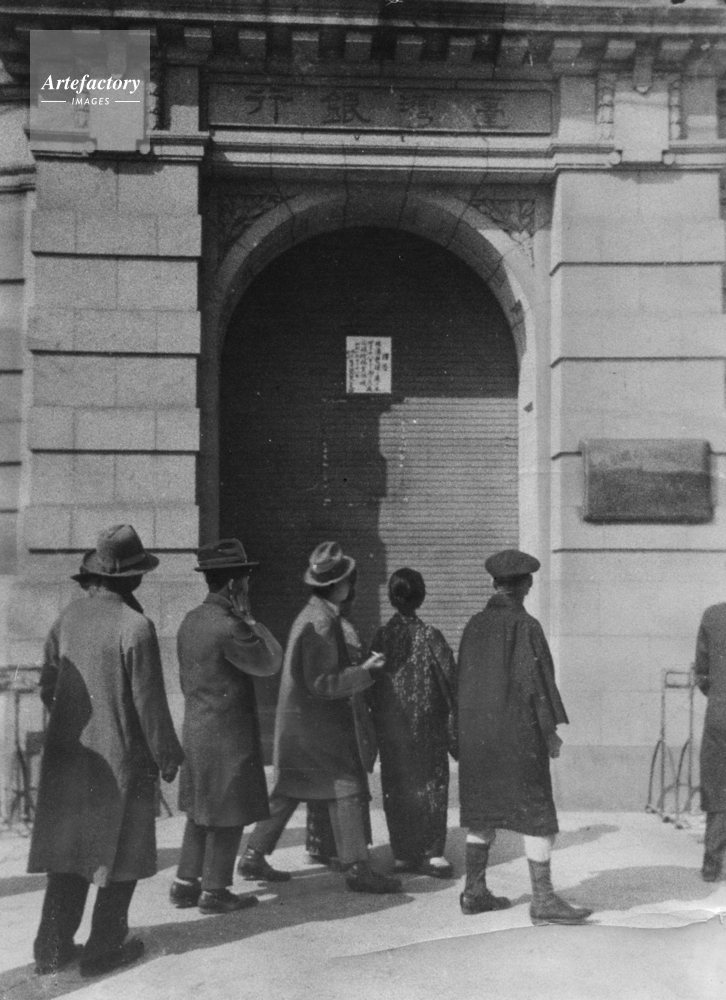 | キャプション | 政府系の台湾銀行が行き詰まって休業、取り付け騒ぎは全国に広がった。預金を下ろそうと台湾銀行東京支店に押しかけ、休業の張り紙をみる人たち | 制限事項 | ||