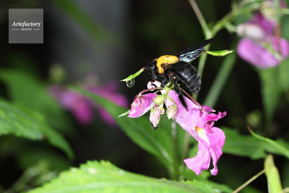 | キャプション | クマバチ ミツバチ科 クマバチ属 ツリフネソウの一番奥の距に蜜があり、キムネクマバチは花に穴を開けて距の外から蜜を吸う。花粉の媒介はせず蜜だけ横取りする。 | 制限事項 | ||