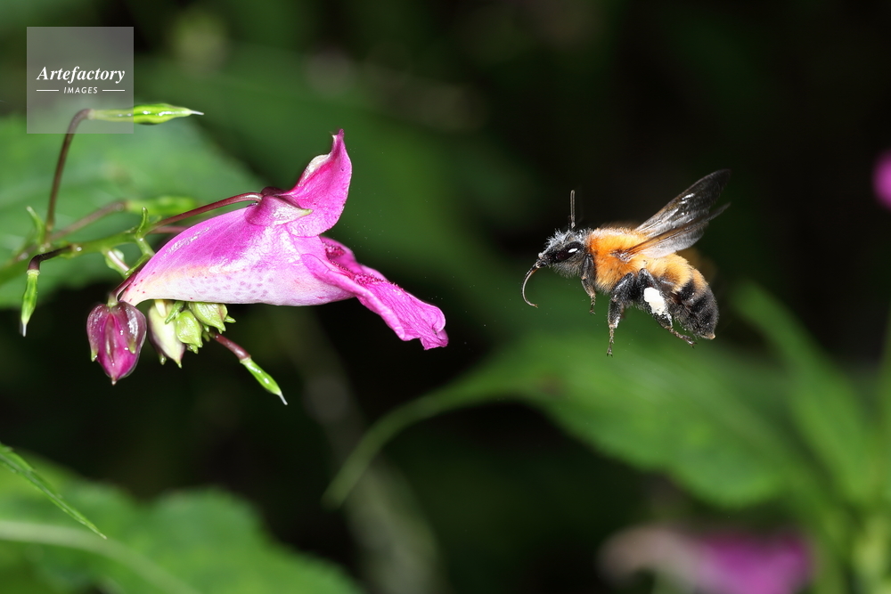 | 作品タイトル | 花粉を飛ばしながらツリフネソウから離れるトラマルハナバチ | モデルリリース | なし | |