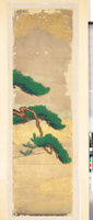 御常御殿 一の間 棚袖貼付 南面 下 紙本著色 松鶴図