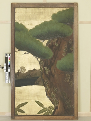 大広間 二の間 戸襖 西面 北より6 紙本金地著色 松孔雀図 重要文化財
