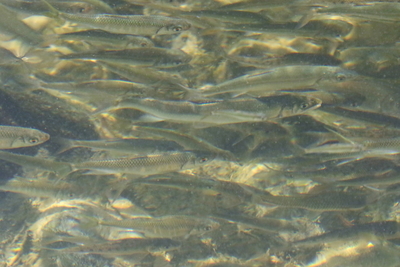オイカワ(ヤマベ)、ニゴイ、ハヤ、アユ、などの小魚の群れ