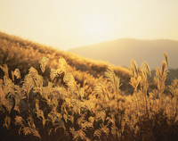 夕陽に染まるススキ原 えびの高原