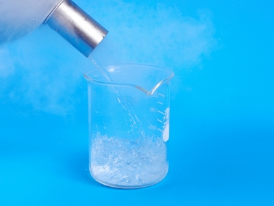 液体窒素に冷されたビーカー