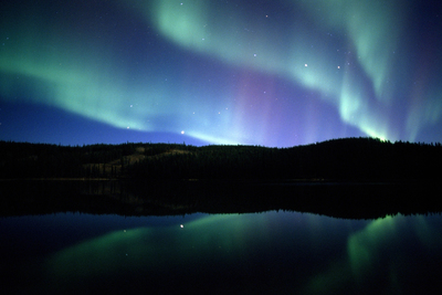 ホワイトホースとユーコン河に降り注ぐオーロラ