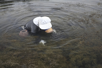 水中を覗く少年