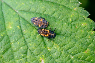 上ナナホシテントウ、下ナミテントウ幼虫