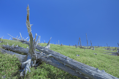 トウヒ白骨林とイトザサ。大台ケ原正木峠