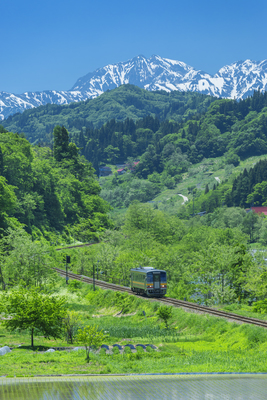 北アルプスと電車と水田