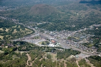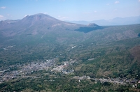 軽井沢駅と中軽井沢の街並みより浅間山