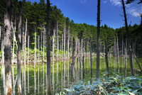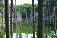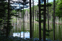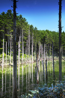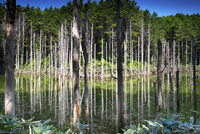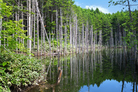 日高の黒い池と水中木