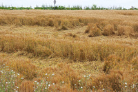風雨で倒れた麦畑