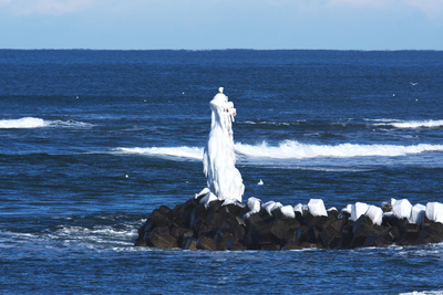 オホーツク海としぶき氷の灯台