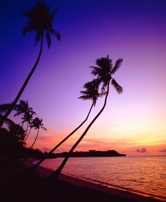 夕暮れの海とヤシの木のシルエット