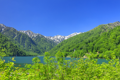 新緑の白水湖と白山