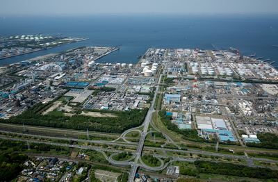 石油化学コンビナート(千鳥町,豊浦町)より東京湾と横浜港